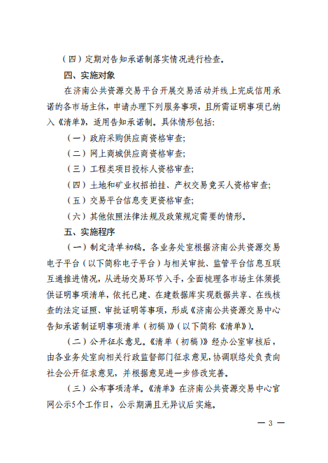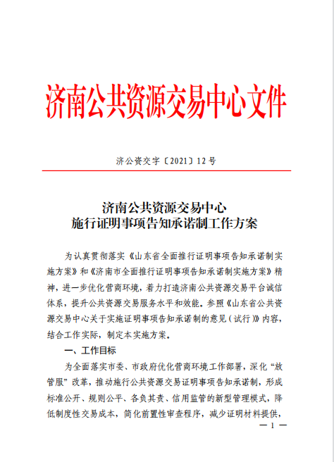 济南公共资源交易中心施行证明事项告知承诺制工作方案