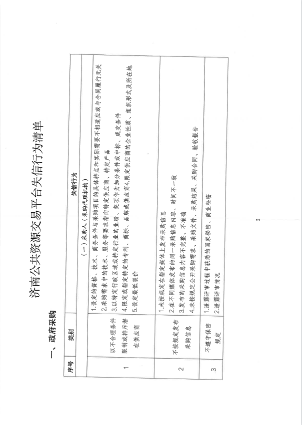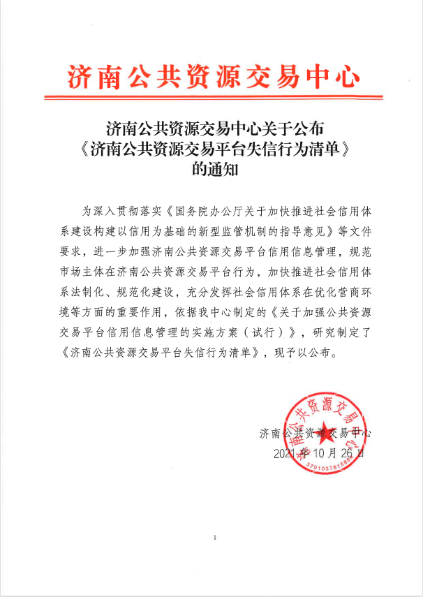 济南公共资源交易中心关于公布《济南公共资源交易平台失信行为清单》的通知