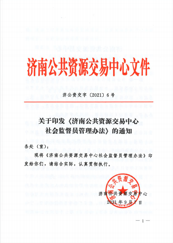 关于印发《济南公共资源交易中心社会监督员管理办法》的通知