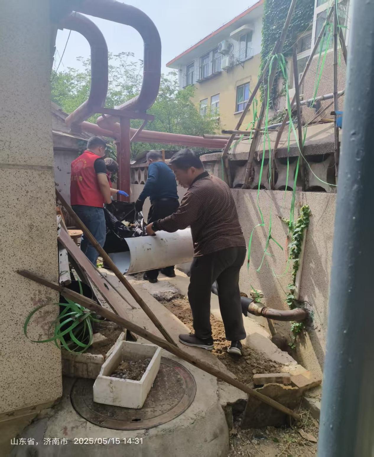 活动现场,党员干部携手社区工作人员、大学生志愿者,迅速投身卫生清扫工作。大家手持铁锨、夹子等工具,不惧脏累,重点对民族大街 9 号院内排水沟进行疏通,并对小区内大件垃圾、绿化带杂草杂物展开全面清理。经过齐心协力的努力,小区环境卫生得到显著改善,排水系统恢复畅通,为居民营造了安全、整洁的居住和出行环境。