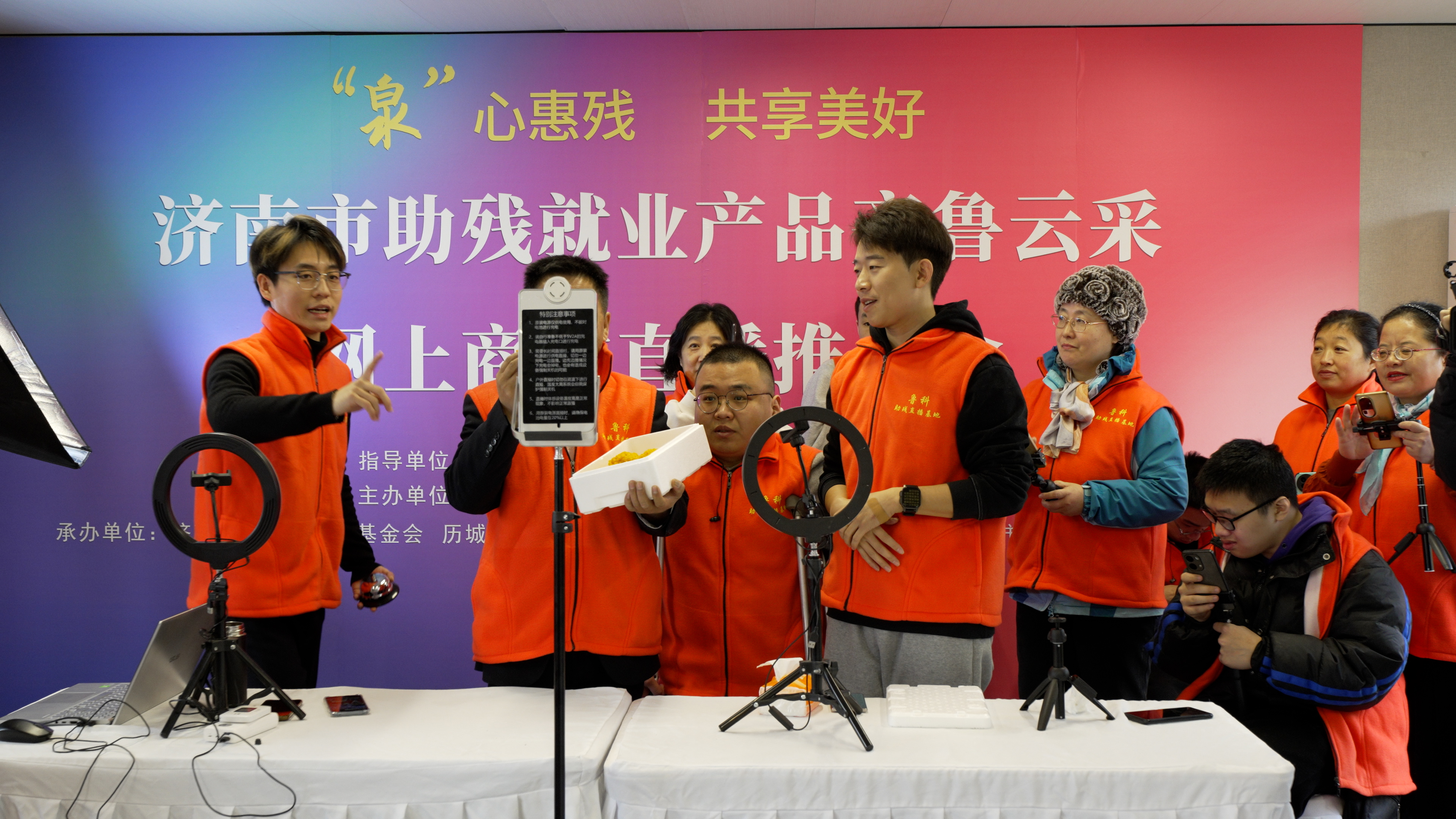 12月12日,由市残联、济南公共资源交易中心主办,市残疾人福利基金会、历城区残联、历城区荷花路街道办事处、济南市鲁科职业培训学校有限公司承办的“济南市助残就业产品齐鲁云采网上商城直播推介会”在历城区荷花路街道办事处朱家庄村举办。省残联党组成员、副理事长康永华,省公共资源交易中心(省政府采购中心)党委委员、副主任李钦伟,济南公共资源交易中心党组书记、主任马学凯,市纪委监委派驻第十一纪检监察组组长王佚如,济南市残联党组成员、副理事长张吉忠,历城区区委副书记、统战部部长李广霞等领导出席活动。会议由济南市残联党组书记、理事长于红主持。
