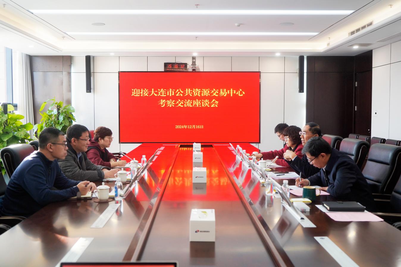 发布日期:2024-12-16 08:4612月16日下午,大连市公共资源交易中心主任郑良一行3人来中心考察交流。中心党组书记、主任马学凯陪同参观并主持座谈。