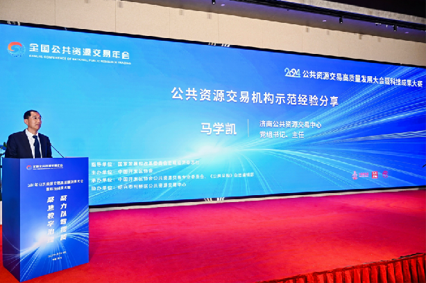 在公共资源交易机构示范经验分享环节,济南公共资源交易中心党组书记、主任马学凯以《聚焦高效办成招投标一件事 打造“链环紧衔”的公共资源交易营商环境》为题,进行了典型经验交流分享,详细介绍了济南市落实习近平总书记在省部级主要领导干部学习贯彻党的二十届三中全会精神专题研讨班开班式上的重要讲话精神,深化“高效办成招投标一件事”改革,推出“六步”举措,打造“链环紧衔”优质营商环境的创新实践,得到与会领导和全国同仁高度评价。