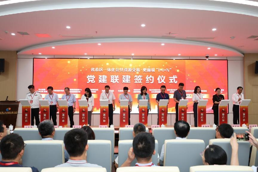 2024年以来,中心坚持以习近平新时代中国特色社会主义思想为指导,深入学习贯彻党的二十大和二十届二中、三中全会精神,坚持政治统领,党建引领,通过支部上下结对、内外结对,成功搭建起省市区一体化公共资源交易·更廉易“1+1+N”党建联建平台,创新开展“五联五促”党建活动,并延伸到“双报到”社区,取得良好效果。