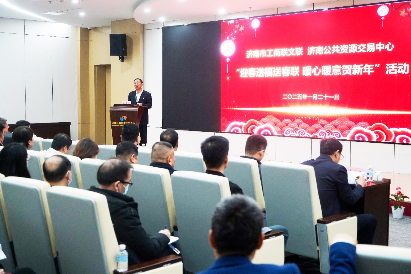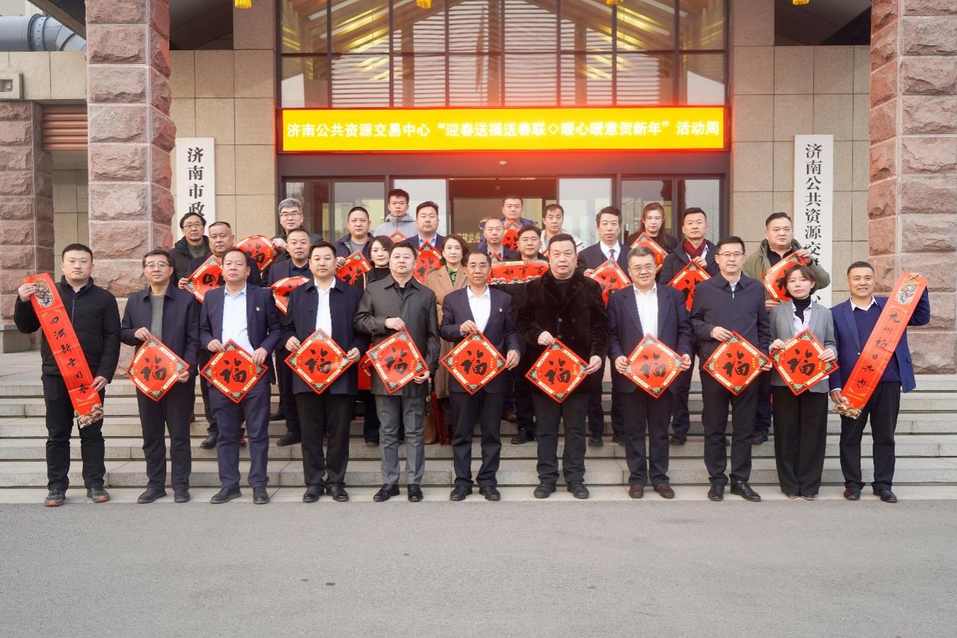 1月21日下午,济南公共资源交易中心与市工商联、市工商联文联在中心一楼多功能厅共同举办“迎春送福送春联 暖心暖意贺新年”活动,为参加政府采购、工程招投标等公共资源交易活动的评标专家赠送春联和“福”字,送上新春的祝福。济南公共资源交易中心党组书记、主任马学凯主持并致辞,市工商联党组成员、副主席兼秘书长于庆利,市文联副主席、市工商联文联主席万富永,市工商联推荐的企业家代表,济南公共资源交易中心班子成员张岩、吕飏、赵华、卢义刚及各处室负责人等六十余人参加活动。