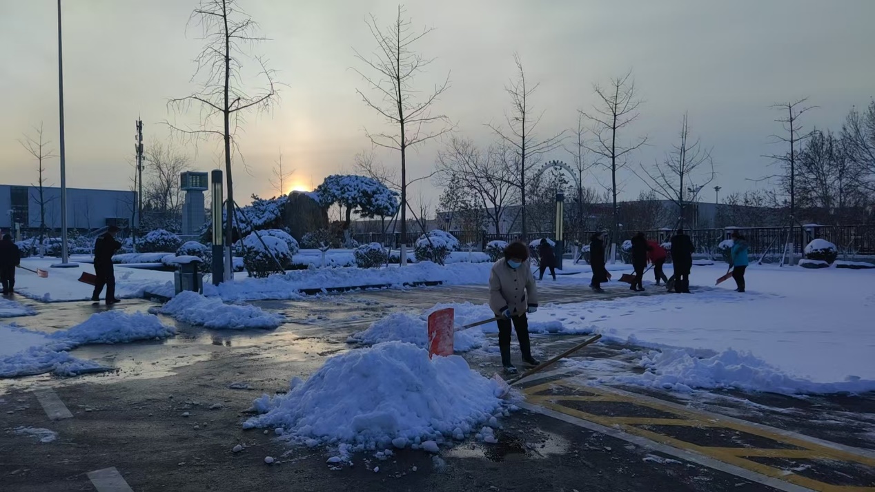 经过近4个小时的奋战,园区积雪基本清理完毕,有效保障了中心人员出入通畅和车辆有序停放。