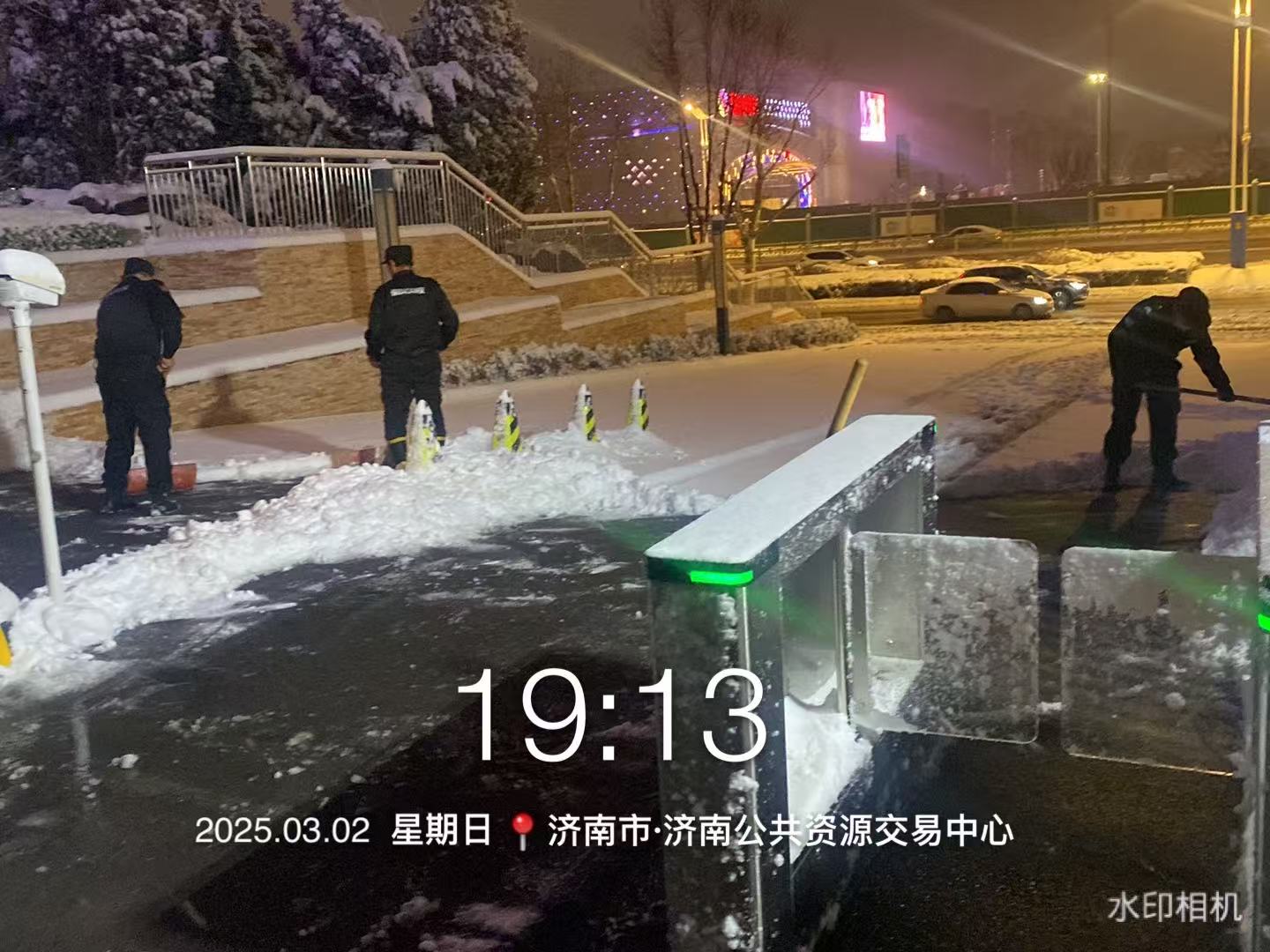 发布日期:2025-03-03 04:353月2日,我市迎来2025年最大降雪,给城市运行和群众生活带来诸多不便。面对此次极端寒潮和雨雪天气,济南公共资源交易中心以雪为令,快速响应,及时启动应急预案,积极组织开展清雪除冰活动,全力保障中心公共资源交易各项工作有序运行。