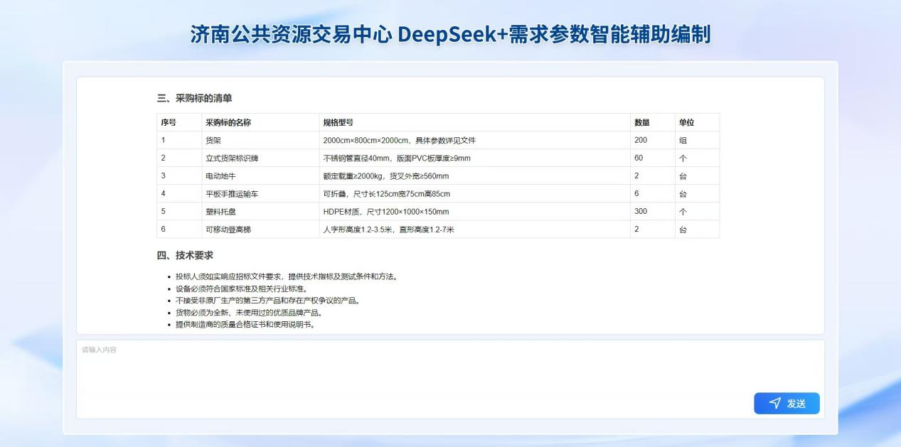 政府采购AI编标助手:全方位编写的“智能顾问”。针对人工编制招标文件耗时长、效率低、不精准,容易出现需求偏差与合规风险等问题。交易中心加强数据结构化治理,利用DeepSeek大模型技术,构建层次清晰、关联紧密的政府采购知识库,建立大模型高质量数据集,推出政府采购AI编标助手,实现市场调研智能化,采购需求精准化,评分办法科学化。采购文件编制效率提升80%以上,废标率下降50%以上,采购整体效率提升30%以上,标志着采购文件编制正式迈入“数智生成”时代。