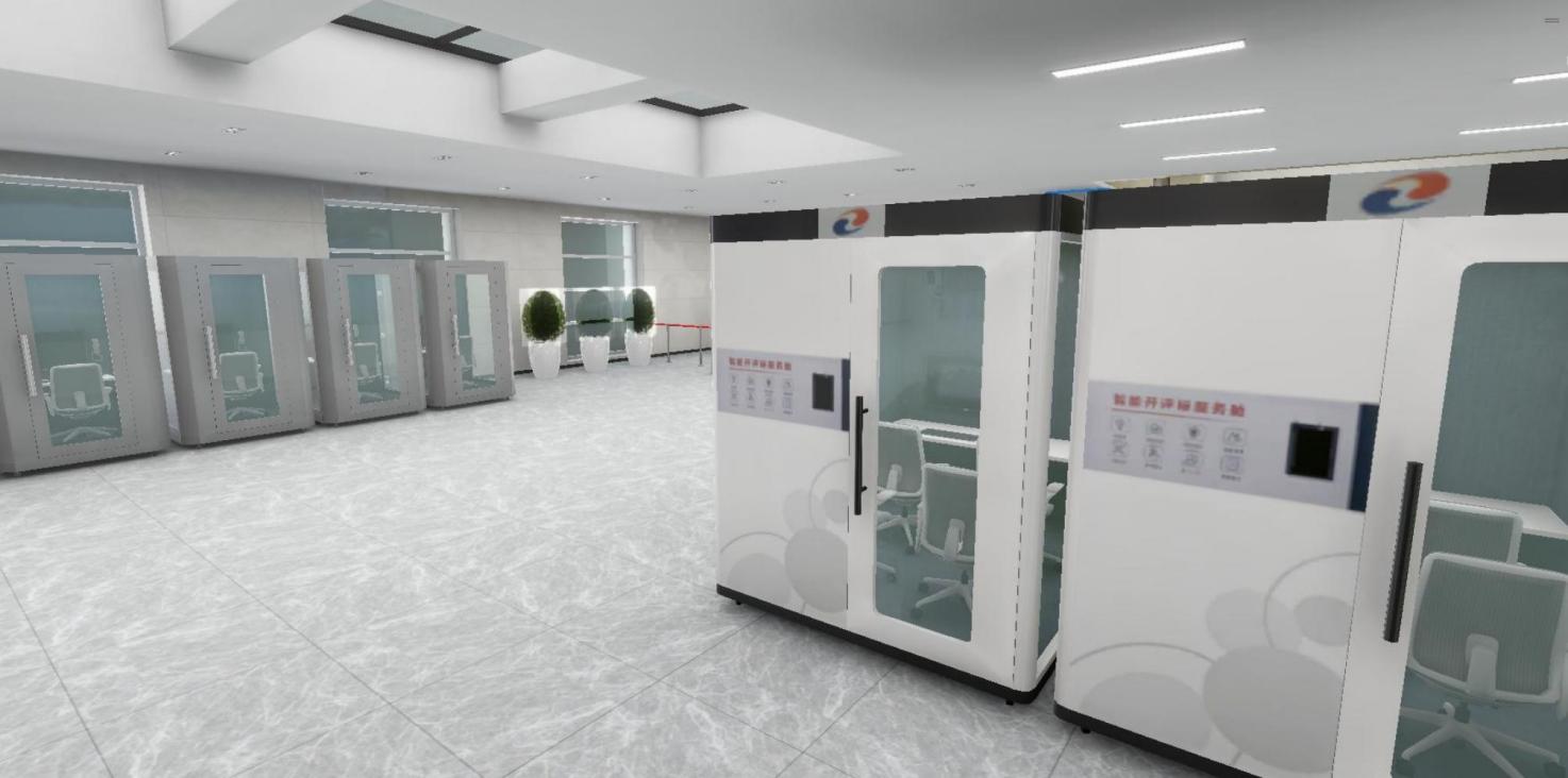 三是交易现场“泉”模拟。采取虚实结合的方式,将评标区现场、双通道、开评标服务舱、专家评审单元等现实场景进行了模拟制作,评审专家可以在数字管家“泉小易”的引领下,沉浸体验专家专用通道,体验刷脸存手机、刷脸获席位、刷脸进区域、刷脸启评标、刷脸离现场、刷脸云签章的“六刷”模式;代理机构人员也可以线上体验刷脸存手机、身份核验、获取席位、进入开评标一体化服务舱,在舱内沉浸体验开标评标全流程组织。