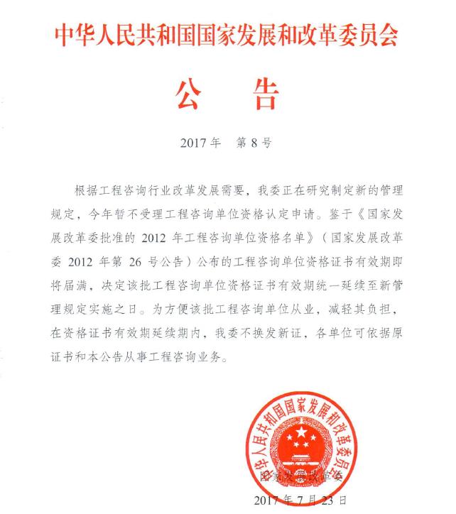中华人民共和国国家发展和改革委员会公告