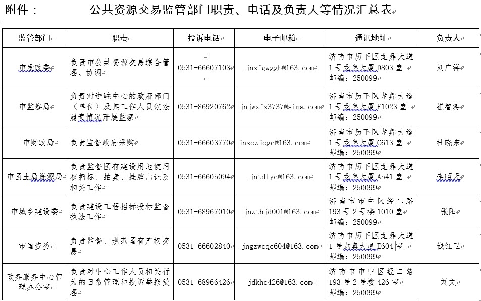 济南市公共资源交易管理工作联席会议办公室