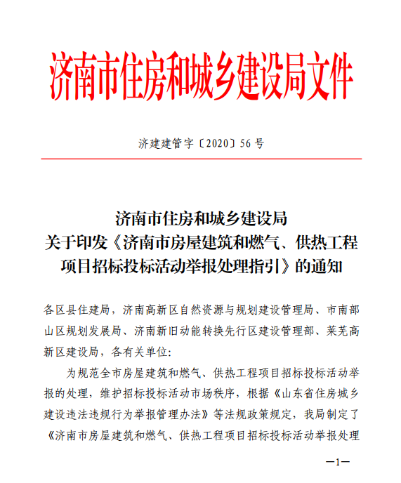 2020住建局发文济南市房屋建筑和燃气、供热工程项目招标投标活动举报处理指引