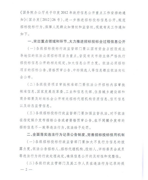 关于进一步推进招标投标信息公开的通知